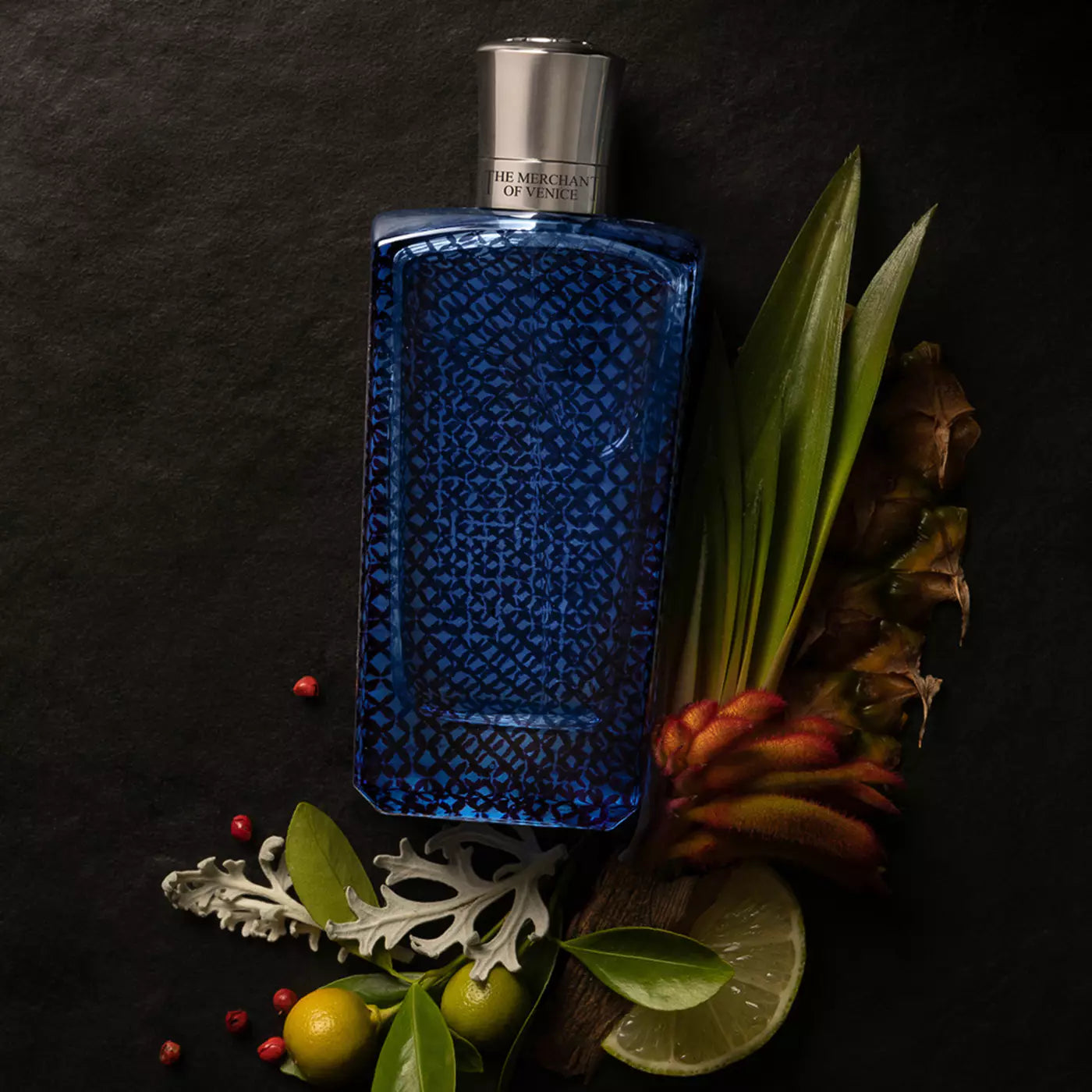 The Merchant Of Venice Venetian Blue Intense EDP is a sophisticated, amber woody scent for men that begins with a zesty pineapple top note, reflecting the grandeur and spirit of ancient Venetian nobility.