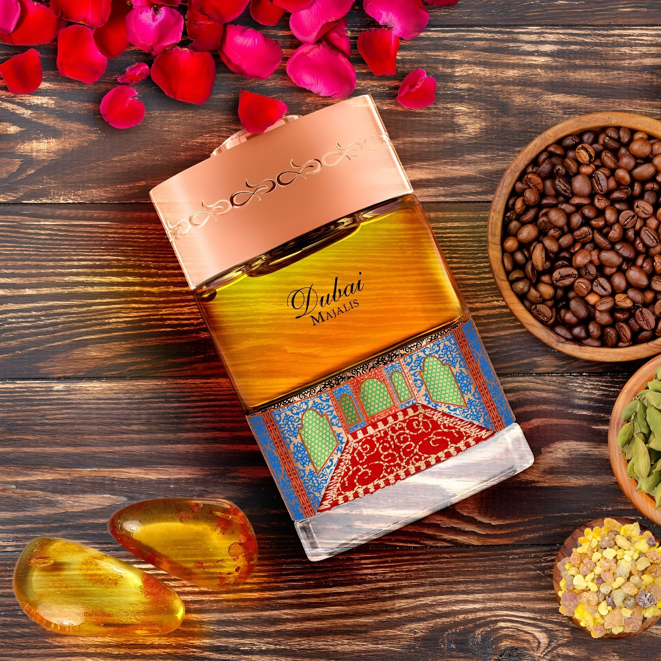 The Spirit Of Dubai Majalis EDP is a luxurious unisex scent that embodies the vibrant and contrasting spirit of Dubai, offering a unique olfactory journey through the city's opulent ambiance.