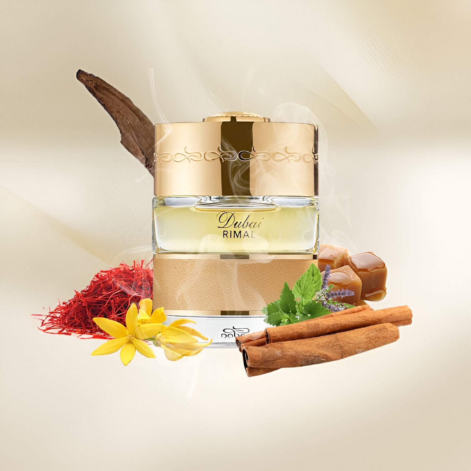 The Spirit Of Dubai Rimal EDP exudes a luxurious and enchanting aroma, blending traditional opulence with modern allure, mirroring the diverse beauty of Dubai itself.