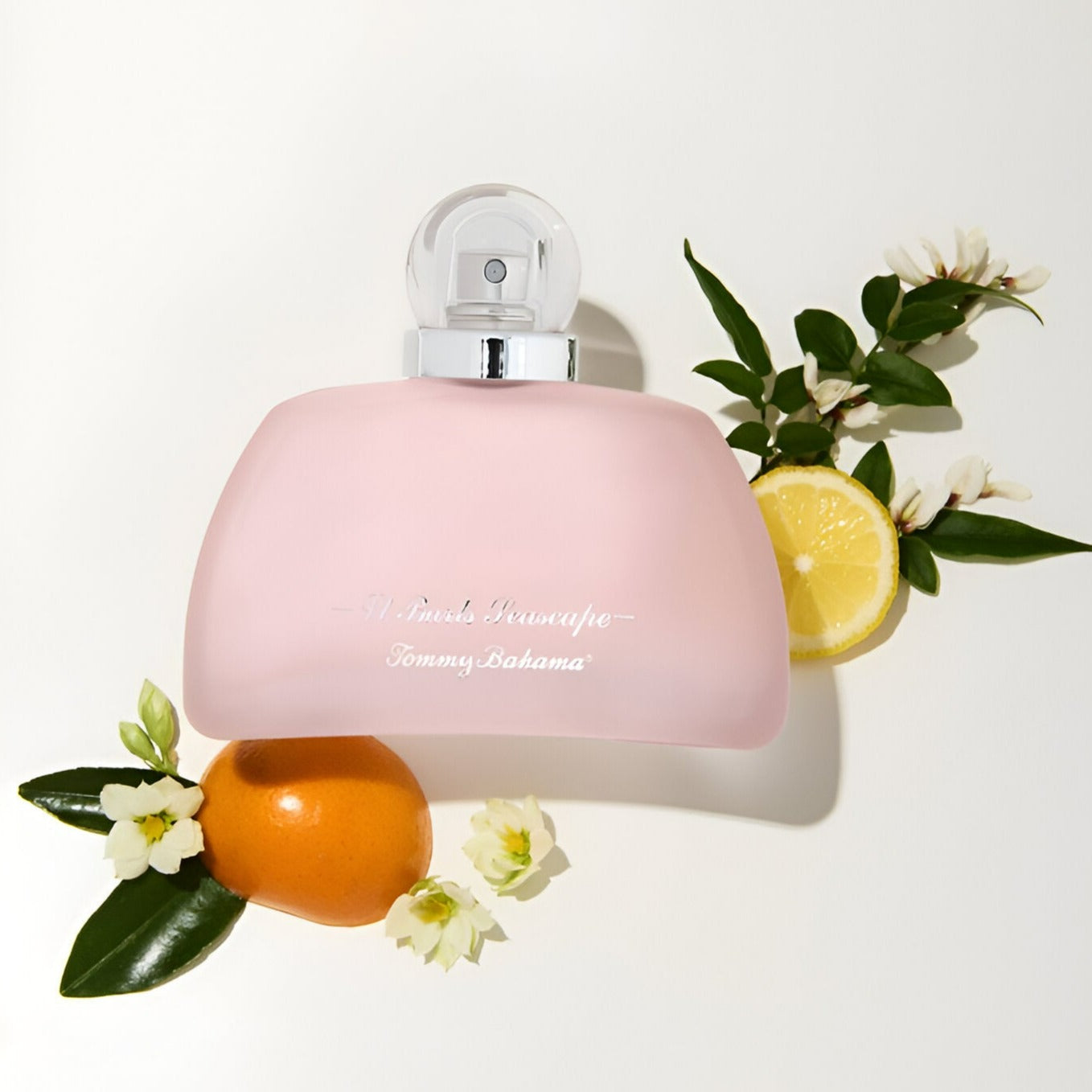 Tommy Bahama St. Barts Seascape EDP smells like a refreshing blend of sparkling lemon and bellini, evoking the essence of sunny shores and a tropical paradise.