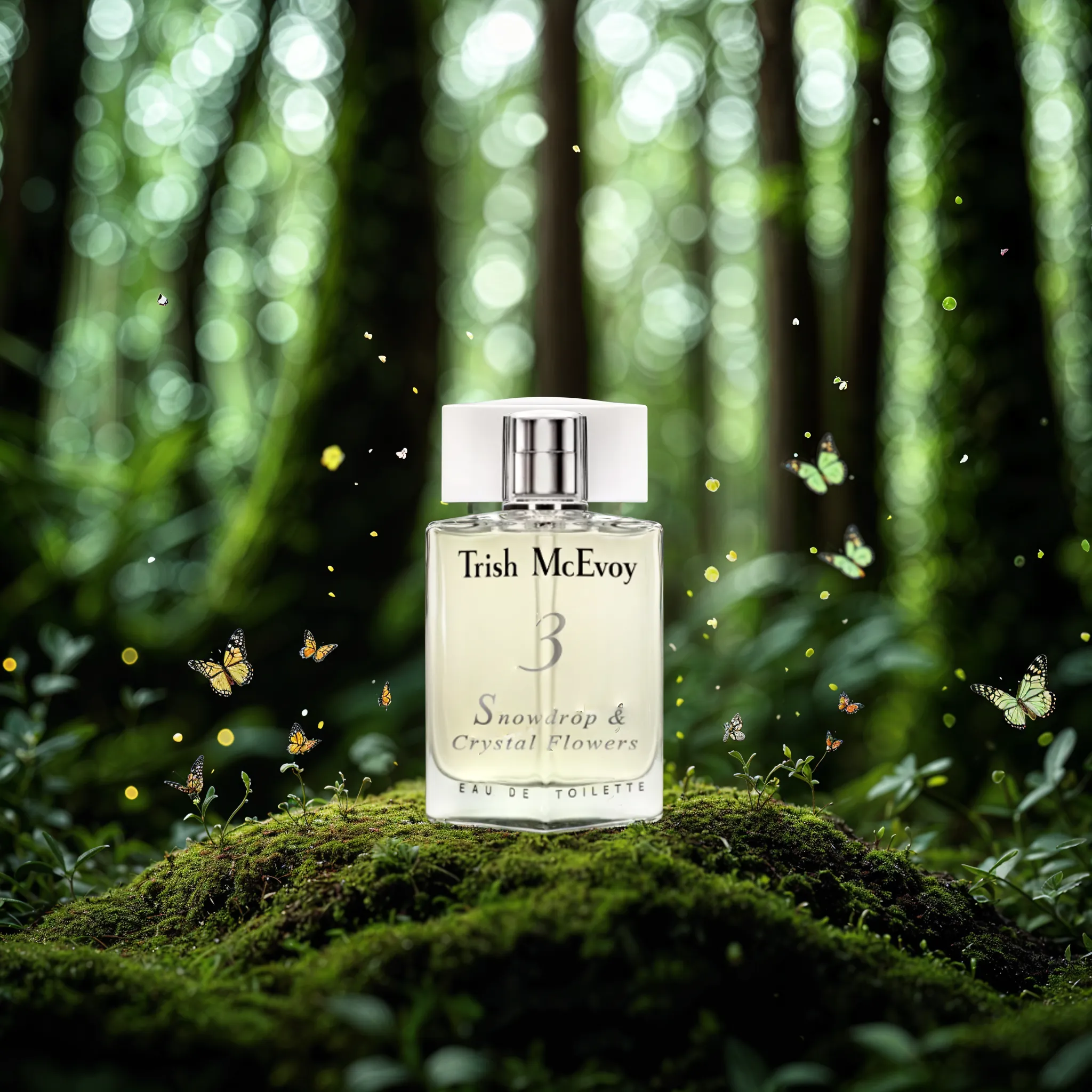 Trish McEvoy's No. 3 Snowdrop & Crystal Flowers Eau de Toilette features a dreamy and elegant aroma with a blend of delicate snowdrop flowers, sparkling berries, and sheer freesia.