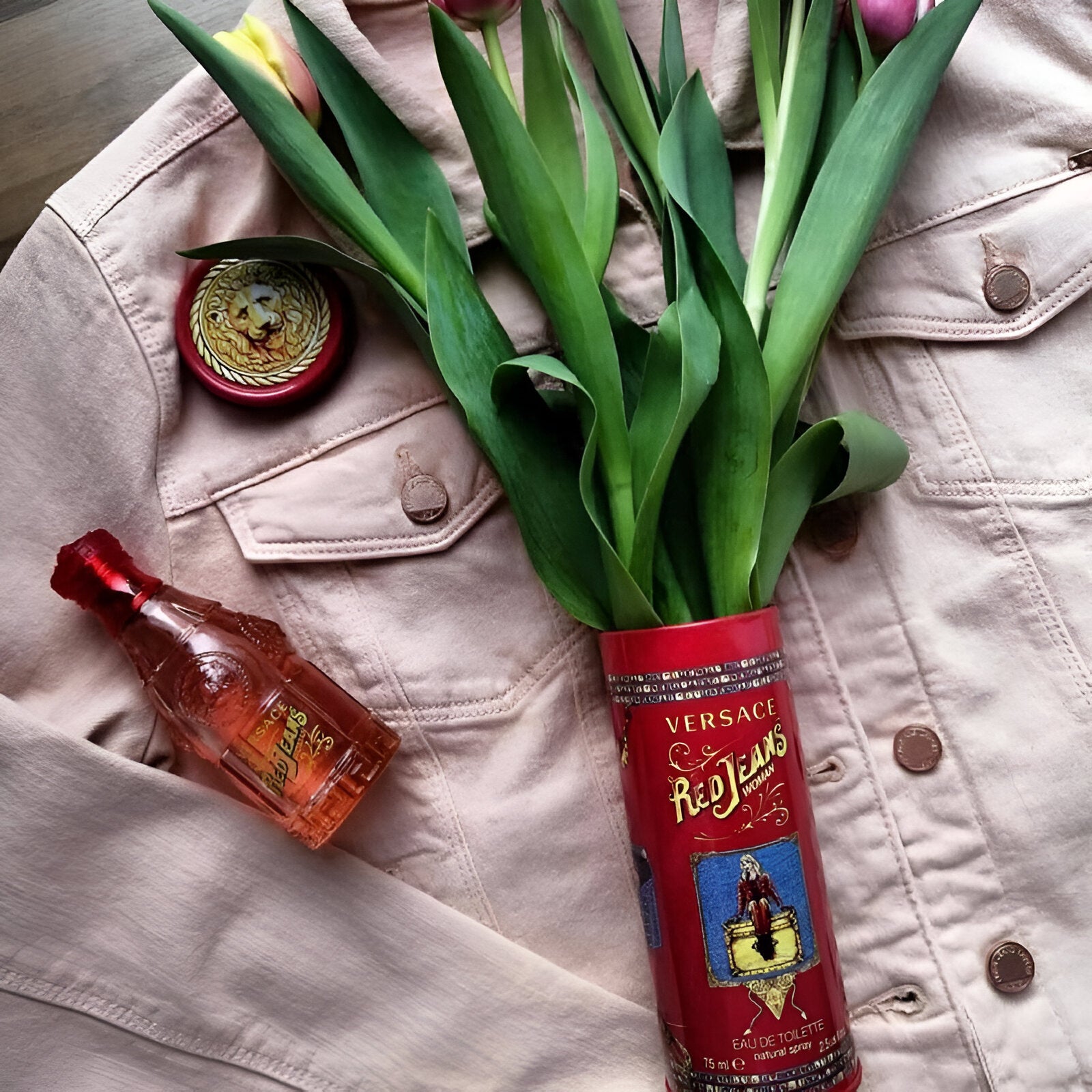 Versace Red Jeans EDT has a sharp, floral scent with notes of luxurious jasmine, indulgent vanilla, and warm musk.