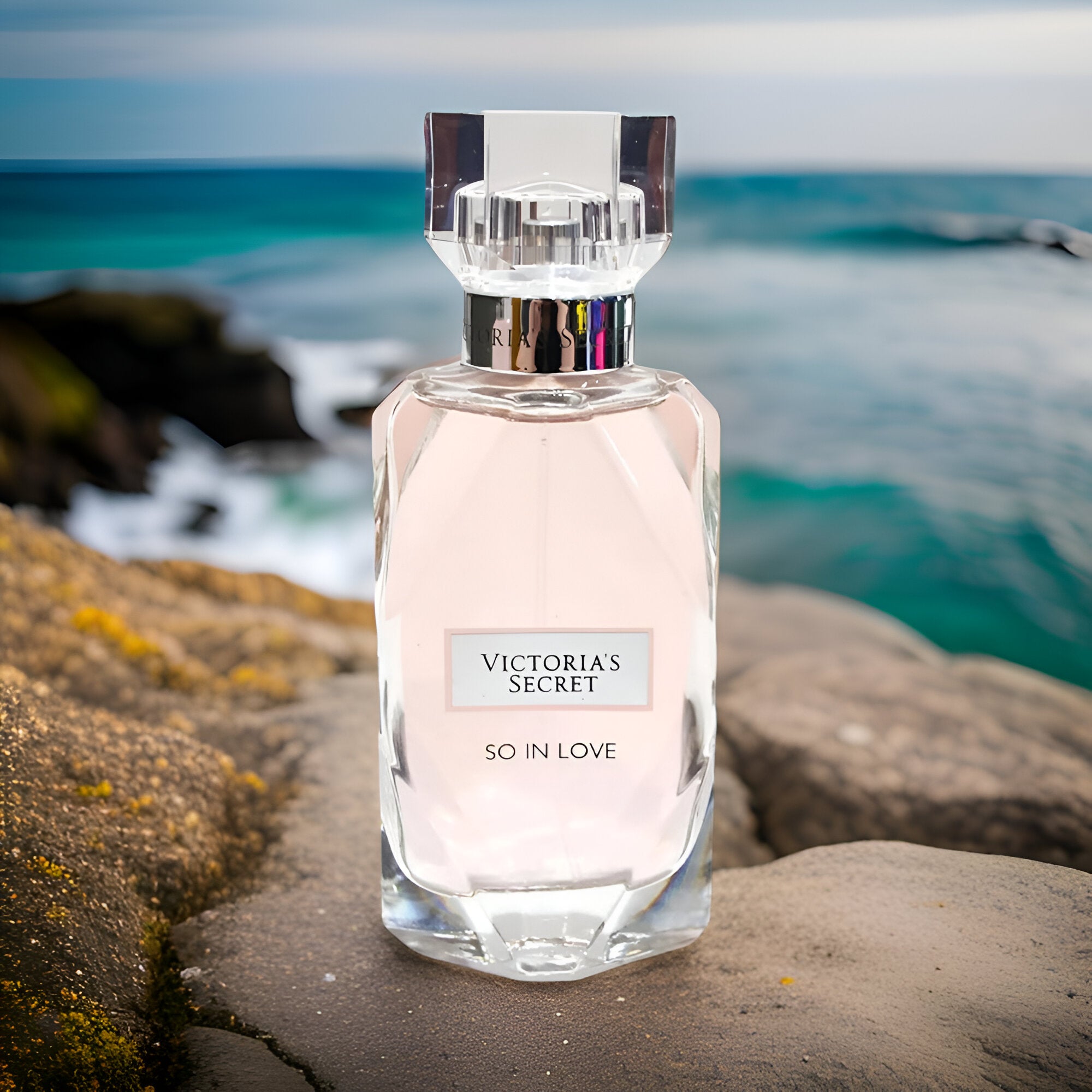Victoria's Secret So In Love EDP smells sweet and romantic, featuring notes of warm vanilla, fresh florals, and a hint of fruity sweetness that create a cozy and inviting scent.