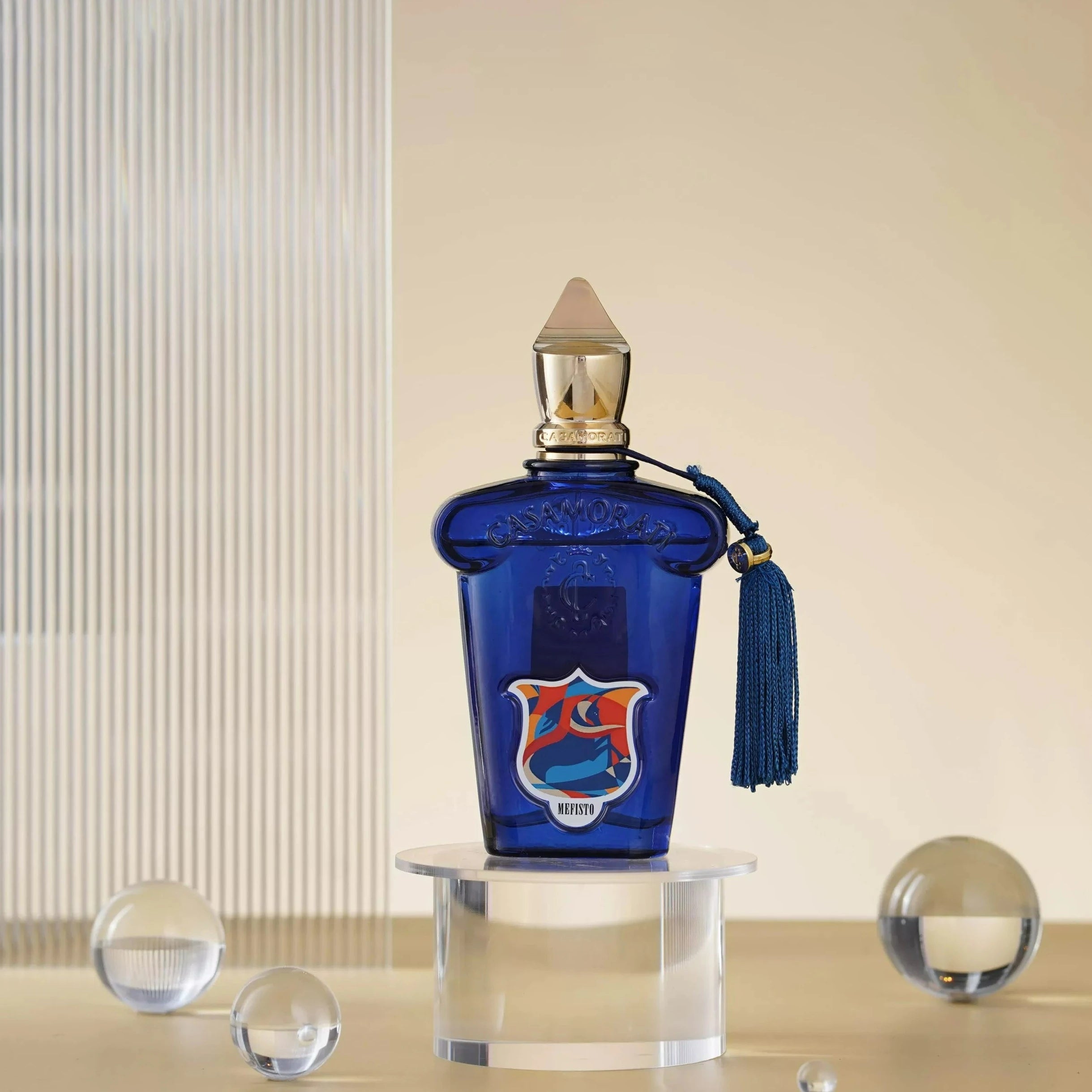 Xerjoff Casamorati Mefisto EDP exudes a timeless blend of Mysore sandalwood, amber, and musk, capturing the luxurious and sophisticated heritage of classic Italian perfumery.