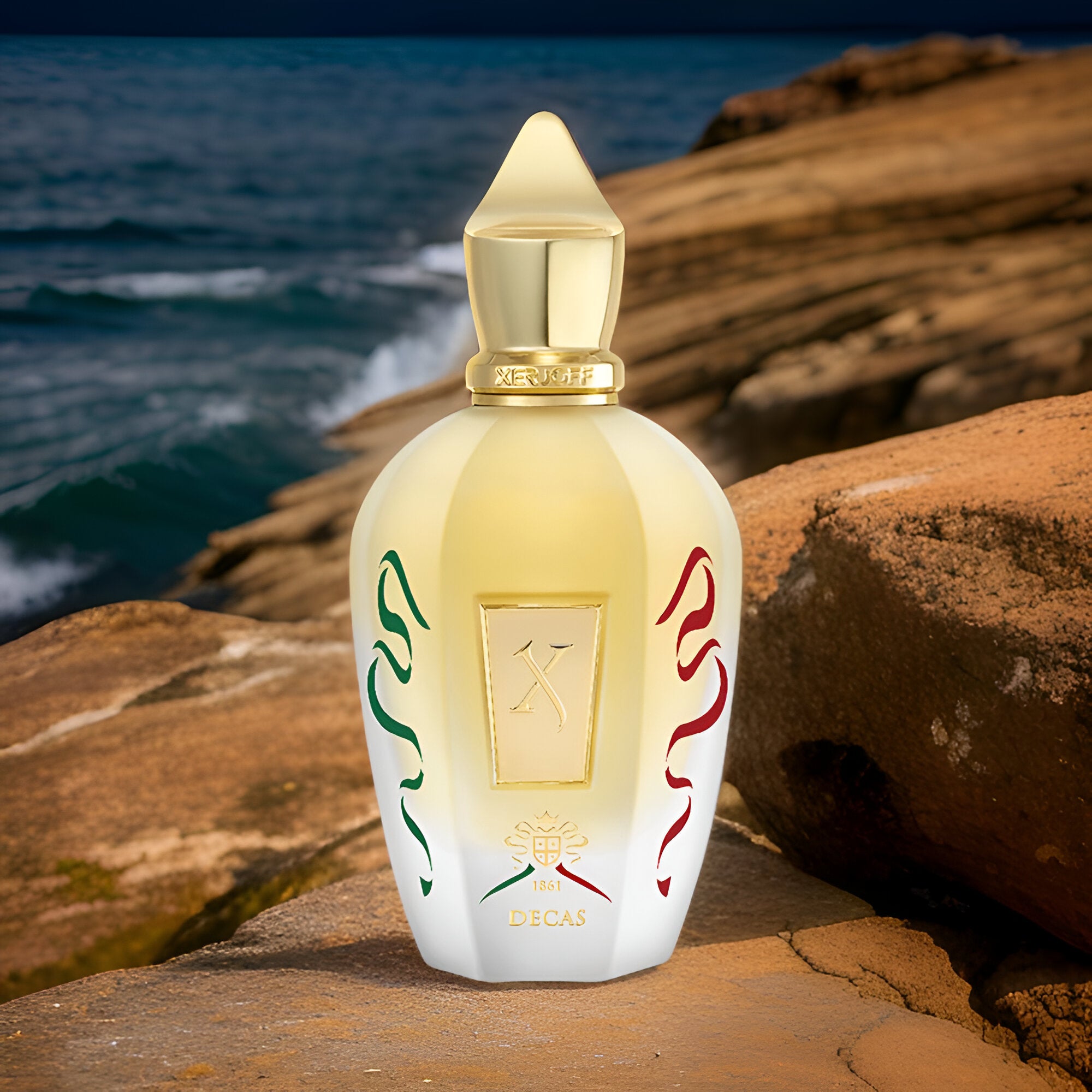 Xerjoff Xj 1861 Decas EDP smells luxurious and warm, featuring rich notes of sweet fruits, creamy vanilla, and hints of spices, evoking a feeling of opulence and sophistication.